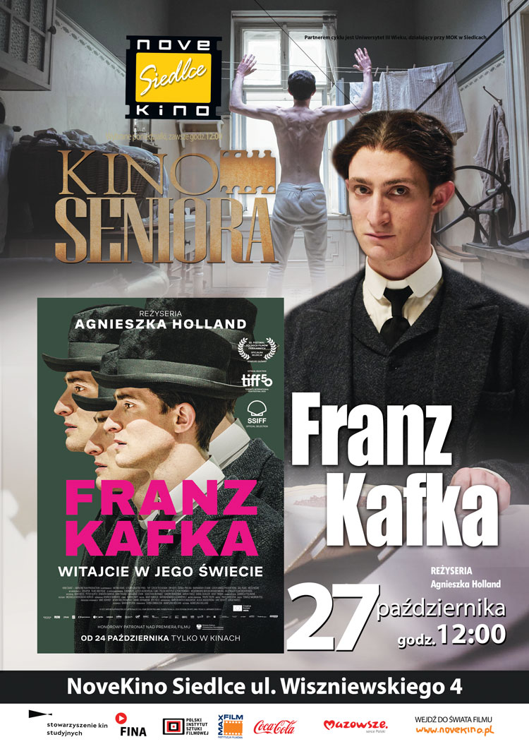 W ramach cyklu Kino Seniora w NoveKino Siedlce zaplanowano pokaz filmu „Franz Kafka!” w reżyserii Agnieszki Holland. Seans odbędzie się 27 października.