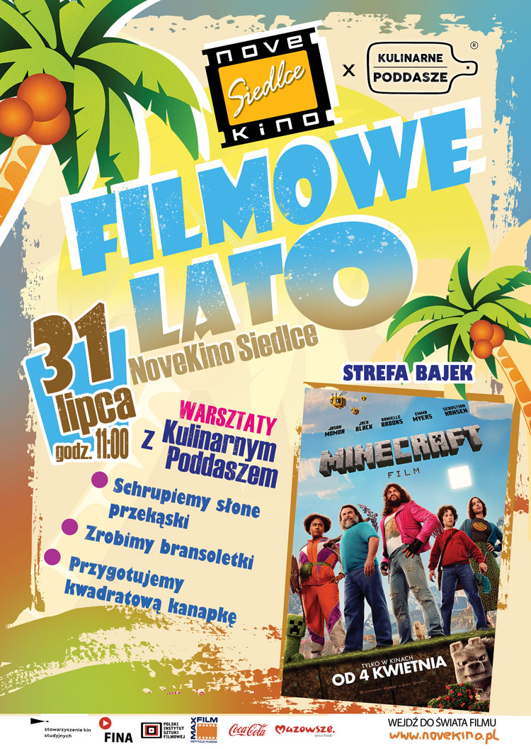 - Zaczynamy o godzinie 11:00. Przed filmem zapraszamy na około 45-minutowe warsztaty kulinarne, gdzie: schrupiemy słone przekąski, zrobimy bransoletki, przygotujemy kwadratową kanapkę. Nie może was zabraknąć. Zarezerwujcie czas i dołączcie do nas na „Filmowe Lato” pełne wrażeń – zaprasza NoveKino Siedlce.