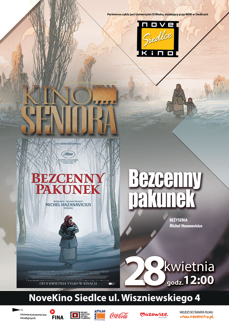 Novekino Siedlce zaprasza na kolejne spotkanie w ramach cyklu Kino Seniora, które odbędzie się w poniedziałek, 28 kwietnia o godz. 12:00. Tym razem na ekranie zaprezentowany zostanie poruszający film „Bezcenny pakunek” w reżyserii Michela Hazanaviciusa – twórcy nagrodzonego Oscarem.