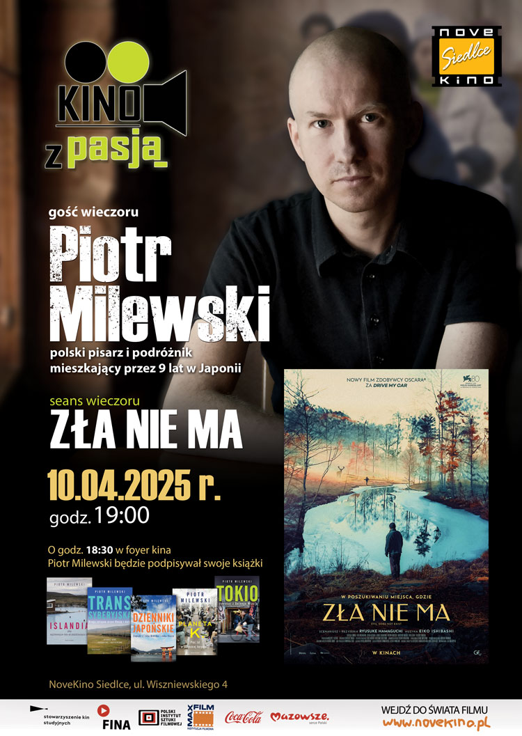 Seans wieczoru: " ZŁA NIE MA" to arcydzieło twórcy "Drive My Car" Ryûsuke Hamaguchi, nagrodzone w Wenecji. Japonia zanurzona w dzikiej naturze, gdzie tradycja spotyka się z dramatem. Czy harmonia przetrwa zmiany? Przekonaj się sam!"Seansowi towarzyszyć będzie spotkanie z pisarzem i podróżnikiem, Piotrem Milewskim, którą poprowadzi Agnieszka Osmólska-Ilczuk.