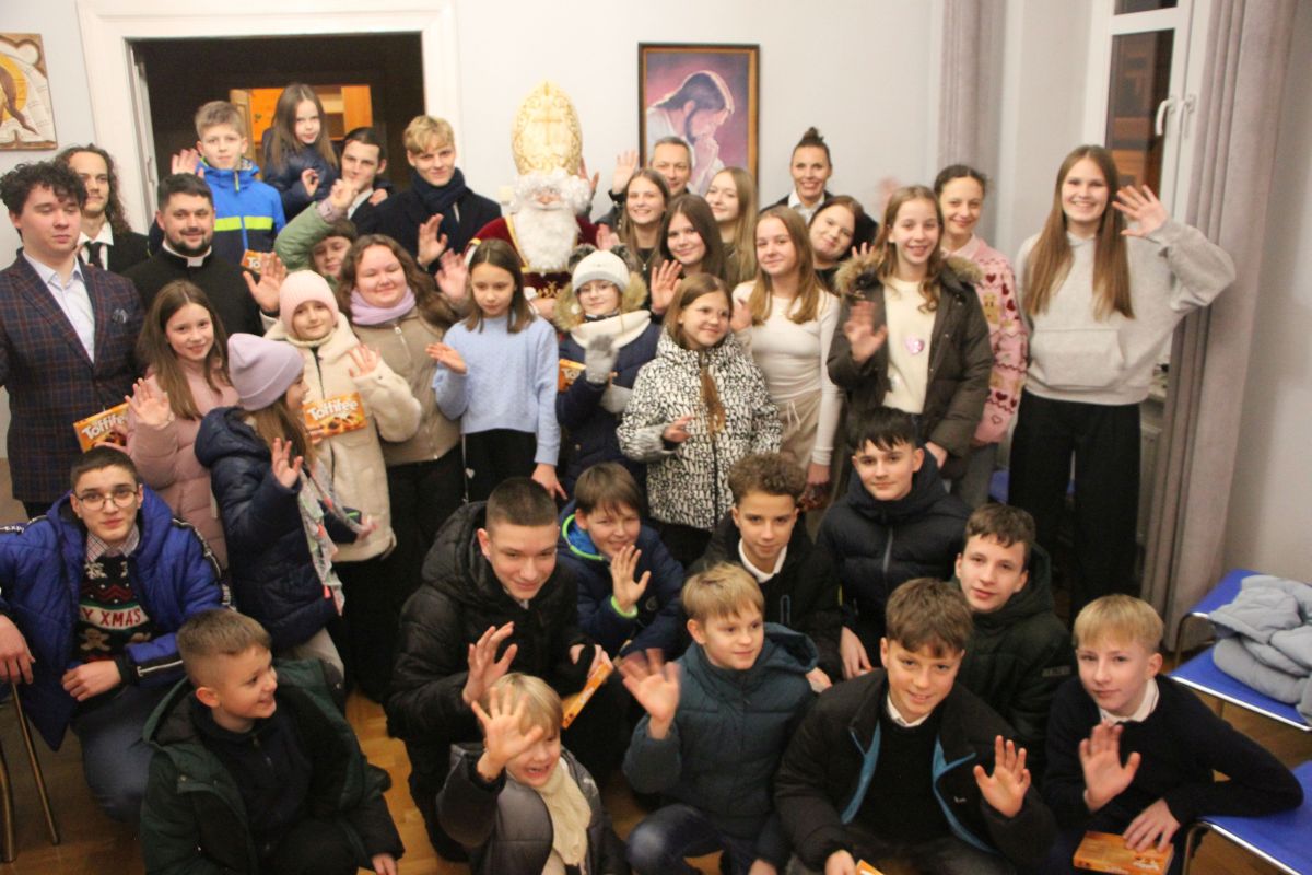 A po Mszy św. ministranci i scholanki spotkali się w oratorium ze św. Mikołajem.