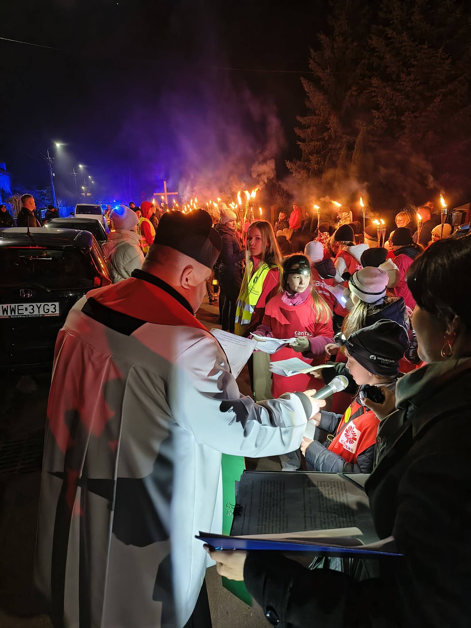 Nabożeństwo, zorganizowane przez Szkolne Koła Caritas, stało się okazją do wspólnej modlitwy, refleksji i podkreślenia więzi międzypokoleniowej w lokalnej społeczności.Uczestnicy Drogi Krzyżowej, od najmłodszych uczniów po seniorów, w skupieniu przechodzili kolejne stacje Męki Pańskiej. Krzyż – symbol wiary i nadziei – był niesiony z rąk do rąk, co ukazało jedność i zaangażowanie mieszkańców.