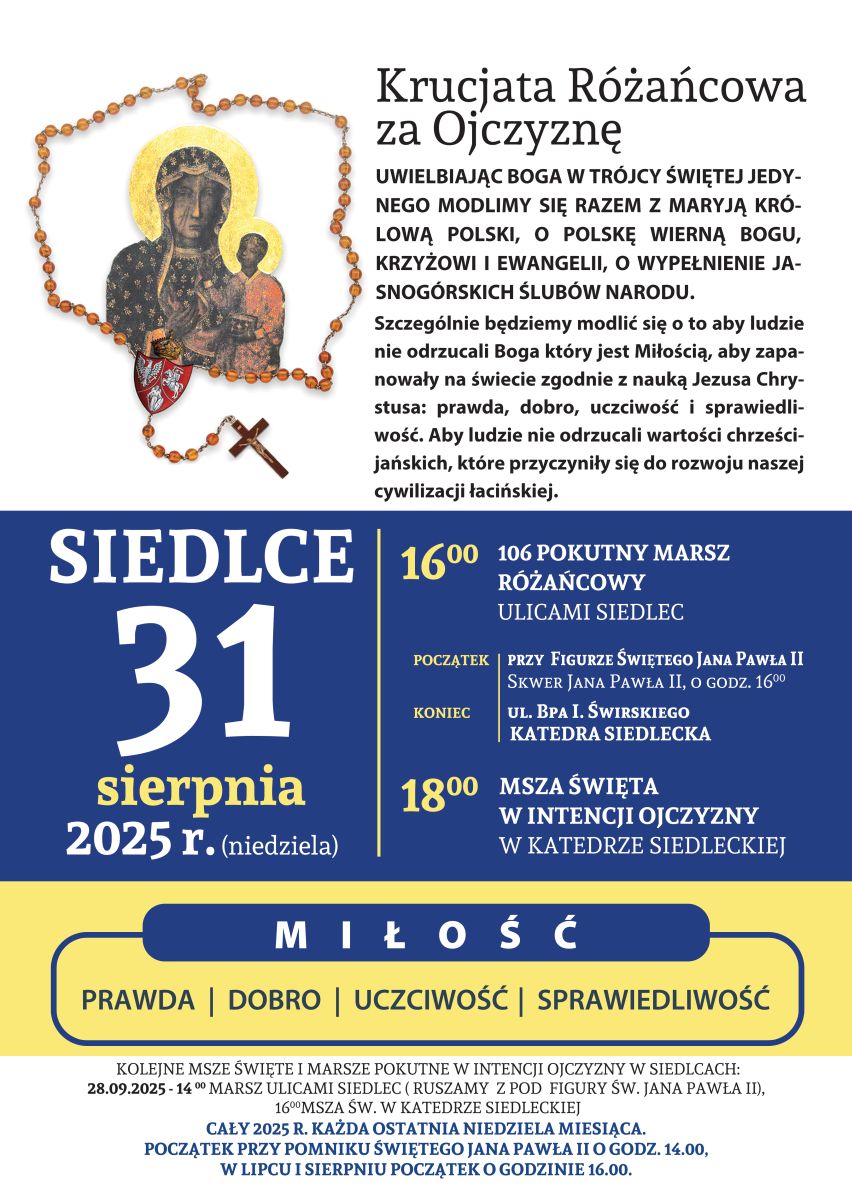 Pokutny Marsz Różańcowy w intencji Ojczyzny przejdzie ulicami Siedlec już po raz 106.