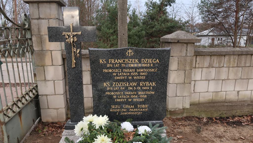 Ks. Franciszek Dzięga (ur. 3 października 1884 r. w Radzyniu Podlaskim) święcenia kapłańskie przyjął w 1909 r. z rąk biskupa lubelskiego, Franciszka Jaczewskiego. Zanim przyjechał do Samogoszczy pracował kolejno w parafiach: Bychawa, Zamość, Końskowola, Międzyrzec Podlaski, Lubartów, Kumów Plebański, Sarnaki oraz Rudno.