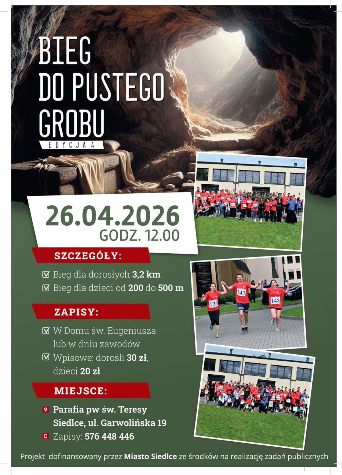 Mieszkańcy Siedlec i okolic po raz kolejny będą mogli połączyć sportową rywalizację z radosnym przeżywaniem okresu wielkanocnego. Parafia św. Teresy od Dzieciątka Jezus organizuje w niedzielę 26 kwietnia IV edycję „Biegu do Pustego Grobu”. Wydarzenie to na stałe wpisało się już w kalendarz lokalnych inicjatyw sportowo-religijnych.