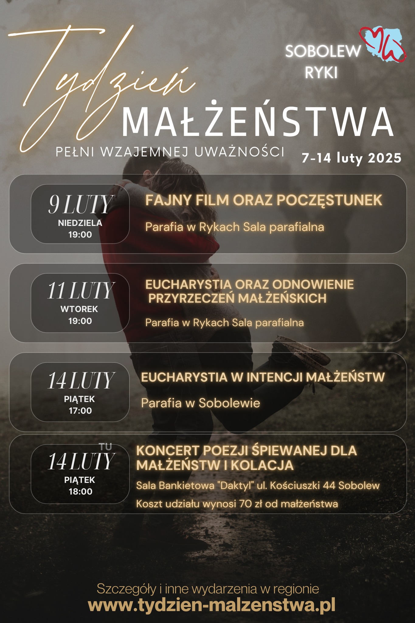 Szczegóły dotyczące wydarzeń w Diecezji Siedleckiej znajdują się tu https://www.tydzien-malzenstwa.pl