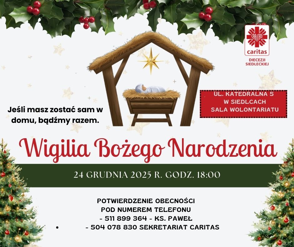 Caritas Diecezji Siedleckiej organizuje 24 grudnia spotkanie wigilijne dla osób samotnych. Wydarzenie zaplanowano w Siedlcach przy ul. Katedralnej 5.
