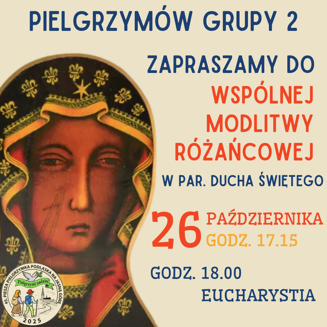 W parafii Ducha Świętego w Siedlcach odbędzie się wspólna modlitwa różańcowa pątników Pieszej Pielgrzymki Podlaskiej. Pielgrzymi z „Dwójki” spotkają się w niedzielę 26 października.