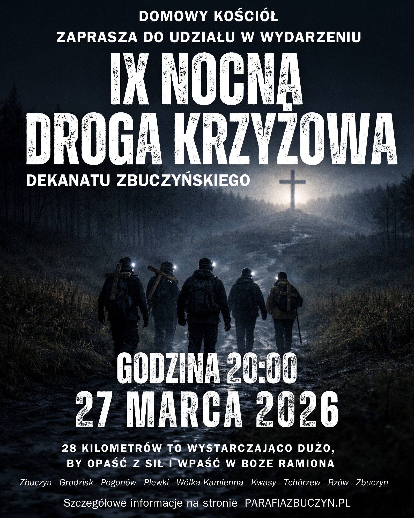 Wierni z dekanatu zbuczyńskiego oraz okolic po raz dziesiąty wyruszą na Nocną Drogę Krzyżową. Tegoroczne wydarzenie odbędzie się 27 marca i jak podkreślają organizatorzy, będzie to czas modlitwy, ciszy i duchowego zmagania.
