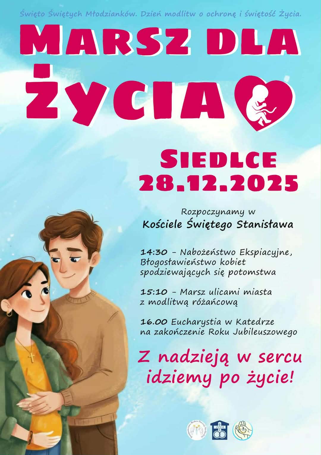 Duszpasterstwo Rodzin oraz Ruch Światło–Życie, a w sposób szczególny Diakonia Życia i Domowy Kościół, zapraszają do udziału w kolejnym Marszu dla Życia, który odbędzie się 28 grudnia, we wspomnienie Świętych Młodzianków.