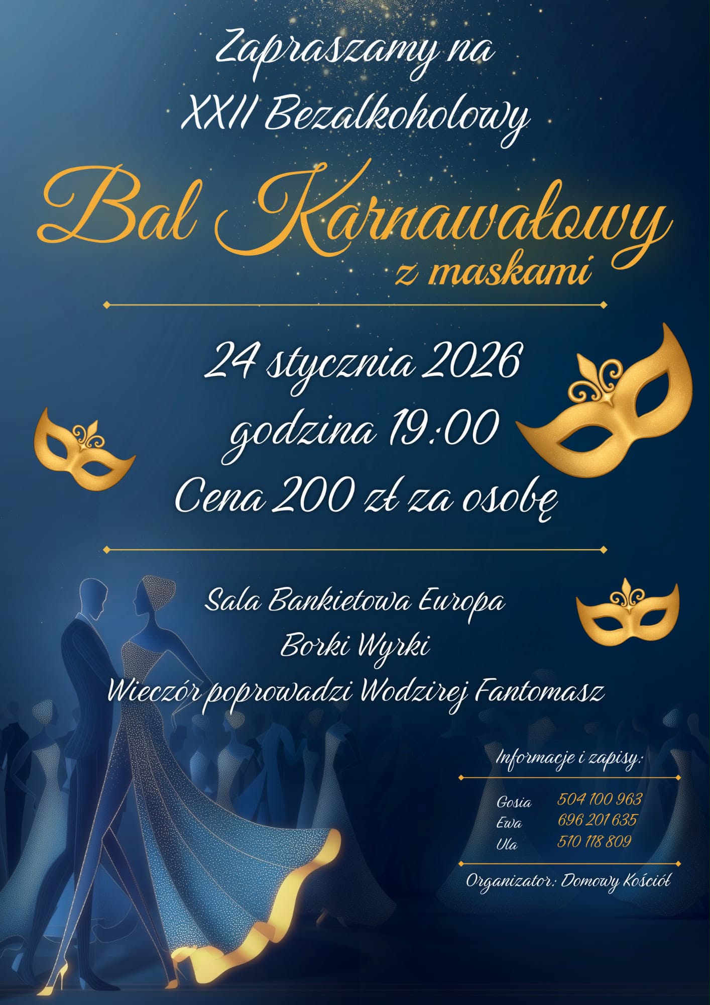 Domowy Kościół zaprasza na Bezalkoholowy Bal Karnawałowy, który odbędzie się 24 stycznia. Impreza organizowana jest po raz dwudziesty drugi. Zaproszeni są wszyscy chętni, którzy chcą doświadczyć dobrej zabawy bez alkoholu i przekonać się, że jest to możliwe.