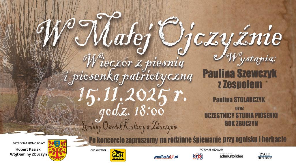 Kultura Patronat medialny Zbuczyn Czw. 13.11.2025 14:37:06 „W Małej Ojczyźnie”. Koncert i wspólne śpiewanie w Zbuczynie