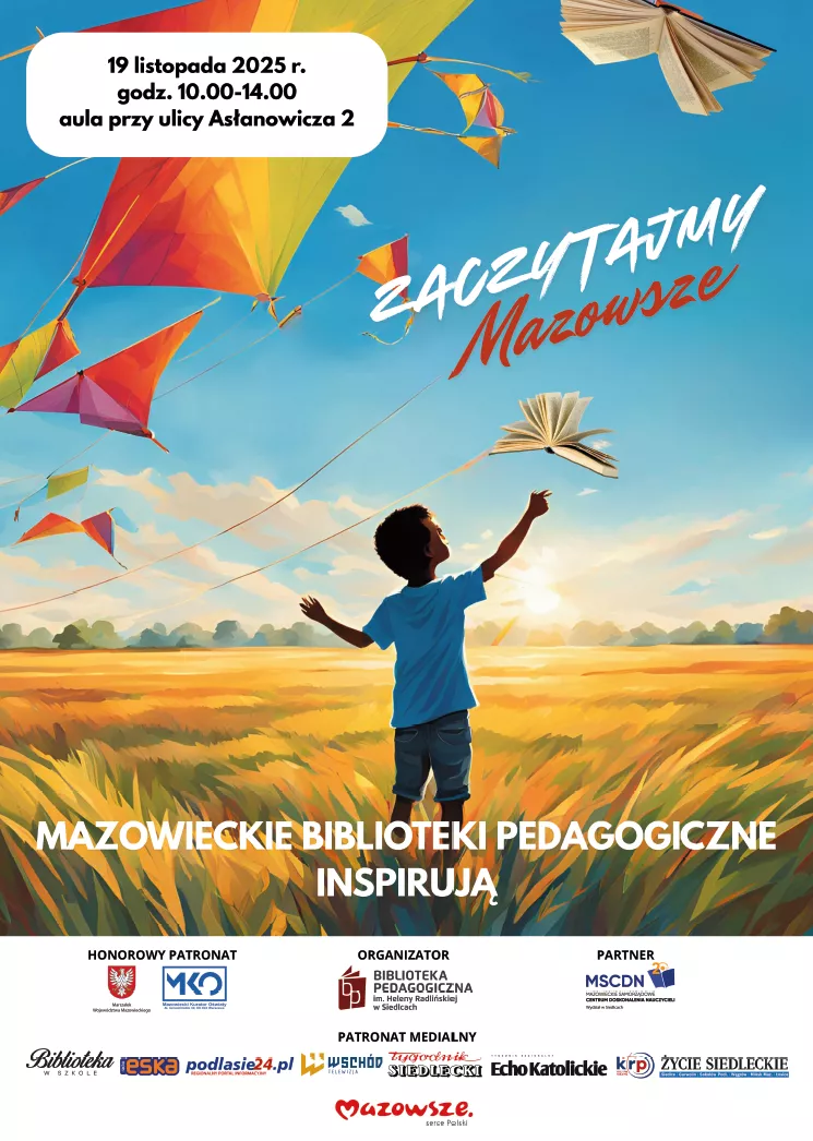 Biblioteka Pedagogiczna im. Heleny Radlińskiej w Siedlcach wraz z Bibliotekami Pedagogicznymi Mazowsza zaprasza na II konferencję „Zaczytajmy Mazowsze” – Mazowieckie Biblioteki Pedagogiczne inspirują. Hasło tegorocznej edycji wydarzenia brzmi: „Biblioteka jest kobietą”.