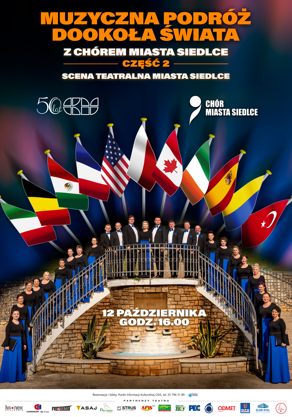 Koncert pt. "Muzyczna podróż dookoła świata – cz. II". odbędzie się już w najbliższą niedzielę, 12 października, o godzinie 16:00 na Scenie Teatralnej Miasta Siedlce. Na scenie wystąpi Chór Miasta Siedlce, który ponownie zabierze publiczność w niezwykłą, pełną kolorów i dźwięków podróż przez różne zakątki globu.