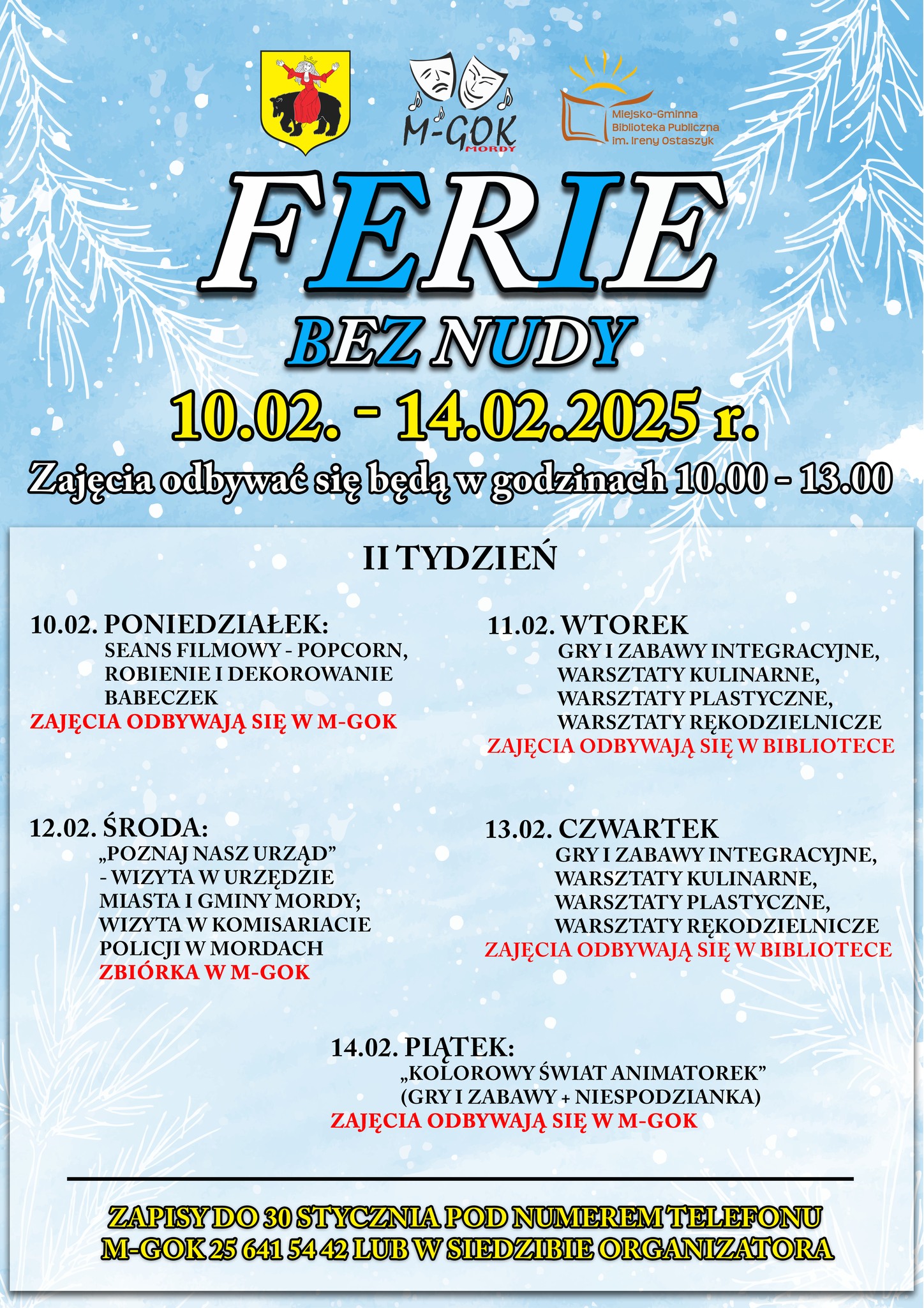 W województwie mazowieckim rozpoczęły się ferie zimowe. W tym czasie ośrodki kultury, biblioteki organizują dla dzieci i młodzieży zajęcia, bądź warsztaty. Na moc atrakcji można liczyć także w Mordach.