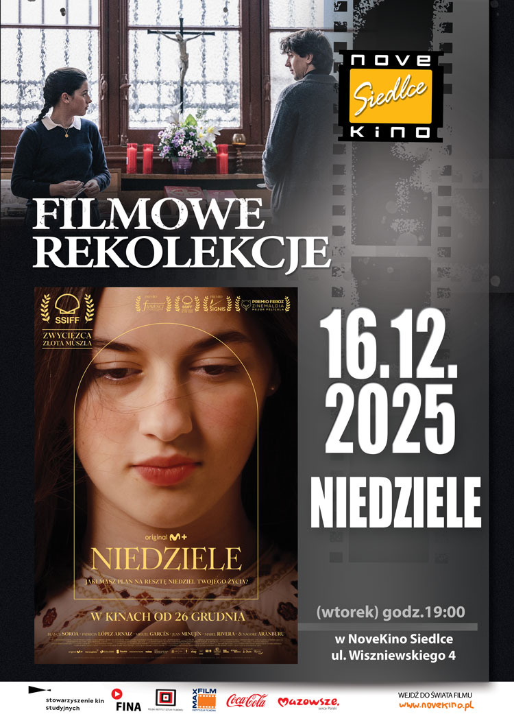 Kolejną odsłonę Filmowych Rekolekcji zaplanowano w NoveKino Siedlce już 16 grudnia. Tym razem widzowie będą mogli zobaczyć poruszający film „Niedziele”, który dotyka tematów wyborów życiowych, powołania i siły rodzinnych więzi. Seans rozpocznie się o godz. 19:00.