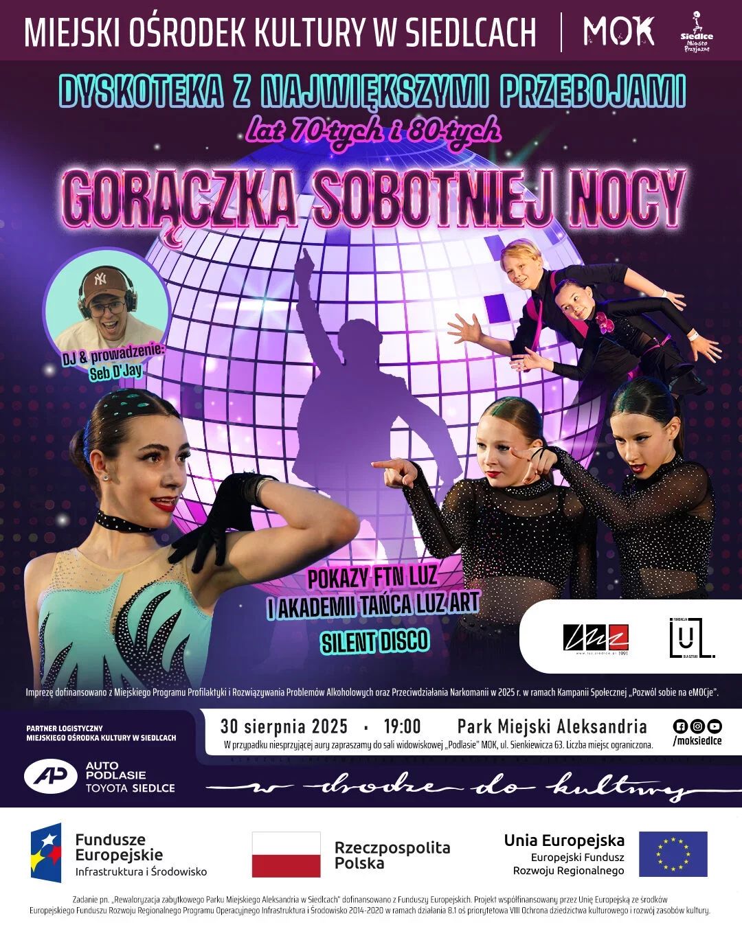 30 sierpnia o godz. 19:00 w Parku Miejskim Aleksandria odbędzie się dyskoteka z Formacją Tańca Nowoczesnego LUZ.