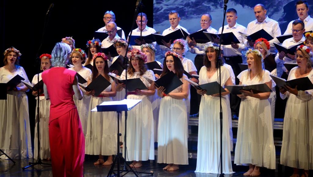 Z jesiennej szarości chórzyści wraz z publicznością przenieśli się w świat dźwięków, emocji i kolorów, poznając utwory wywodzące się z różnych zakątków globu. W programie znalazły się zarówno kompozycje tradycyjne, jak i współczesne — dynamiczne, jak i bardziej nastrojowe. Każdy utwór był opowieścią o danym miejscu i jego wyjątkowym klimacie.Nie zabrakło też polskich akcentów — chór zaprezentował m.in. utwory „W moim ogródecku”, „Siekierecka rąbie” czy „Ostatni Mazur”. Koncertowi towarzyszyła ciekawa oprawa wizualna: kolorowe stroje, wianki, wachlarze oraz nietypowe dla chóralnych wykonań instrumenty perkusyjne, takie jak bębny, wzbogacały muzyczne doświadczenie.