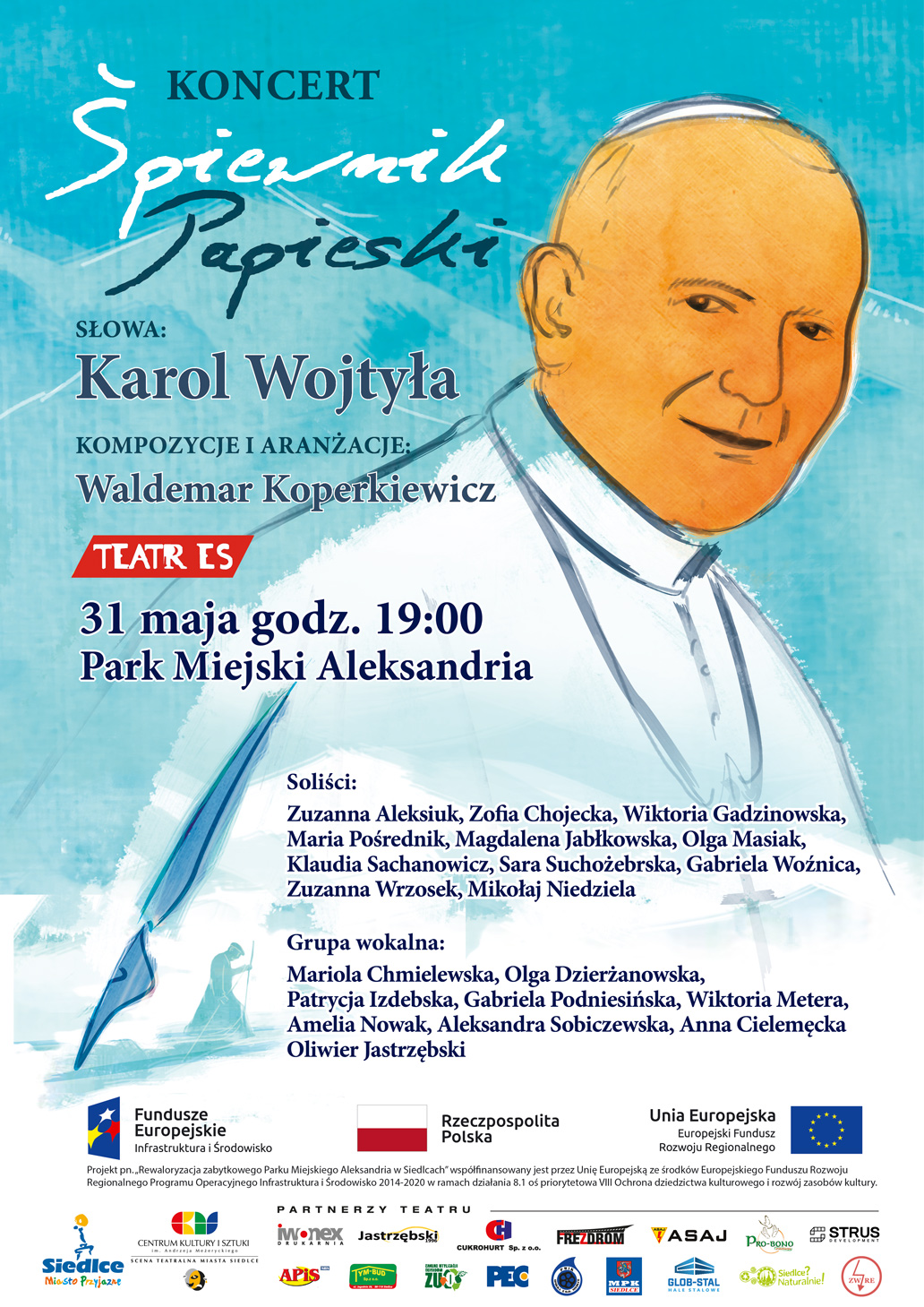 W sobotę, 31 maja o godz. 19:00 w Parku Miejskim Aleksandria odbędzie się koncert „Śpiewnik Papieski” w wykonaniu artystów Teatru ES.