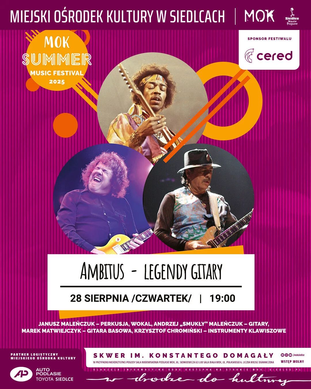 W czwartek, 28 sierpnia o 19:00 przy Skwerze im. Konstantego Domagały w Siedlcach odbędzie się kolejny koncert z cyklu MOK Summer Music Festival. Tym razem przed publicznością wystąpi zespół Ambitus z programem „Legendy gitary”.