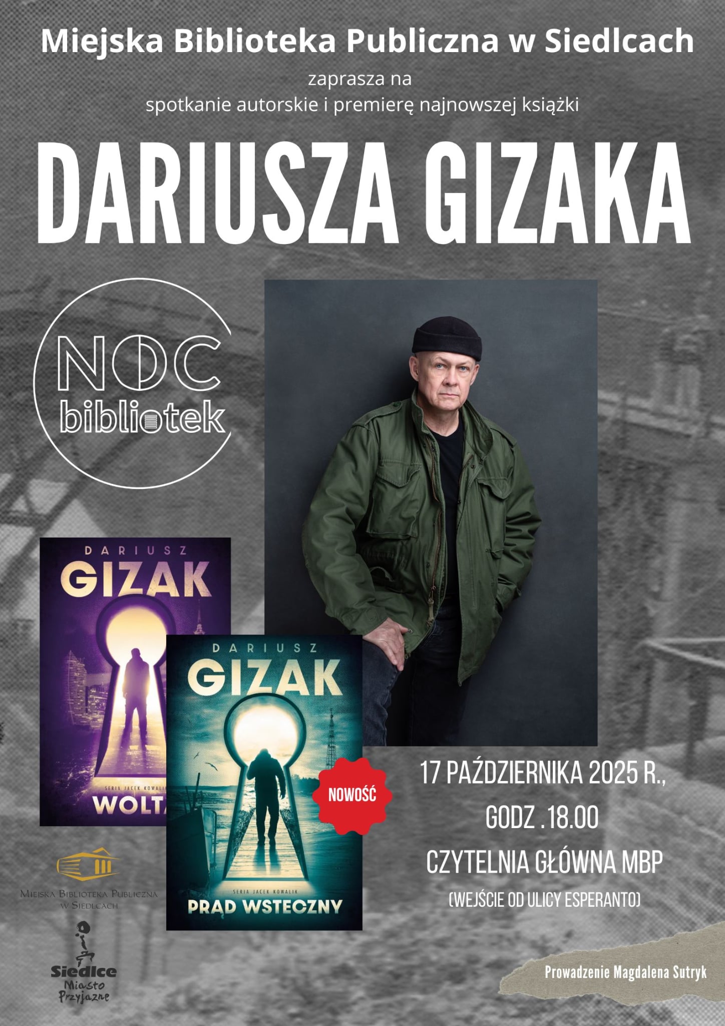 Noc Bibliotek z Dariuszem Gizakiem w MBP Siedlce – premiera kryminału i spotkanie z niezwykłą postacią