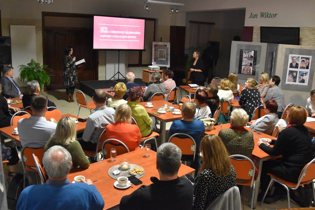 Spotkanie, które odbyło się 28 stycznia prowadziła Karolina Przytulska – założycielka organizacji zrzeszającej tłumaczy pisemnych najstarszych literackich języków „Starocerkiewni”. Wykład cieszył się dużym zainteresowaniem, a poświęcony był historii i pochodzeniu języka staro-cerkiewno-słowiańskiego i jego wpływu na rozwój współczesnych języków słowiańskich, w tym języka polskiego, wpływu na rodzaje alfabetów, a także przedstawieniu sylwetek Cyryla i Metodego.Karolina Przytulska w swojej prezentacji multimedialnej przedstawiła także zabytki zachowane w formie kodeksów i rękopisów o charakterze religijno-społecznym. Prelegentka chętnie odpowiadała na zadawane pytania oraz była do dyspozycji osób, które chciały porozmawiać.