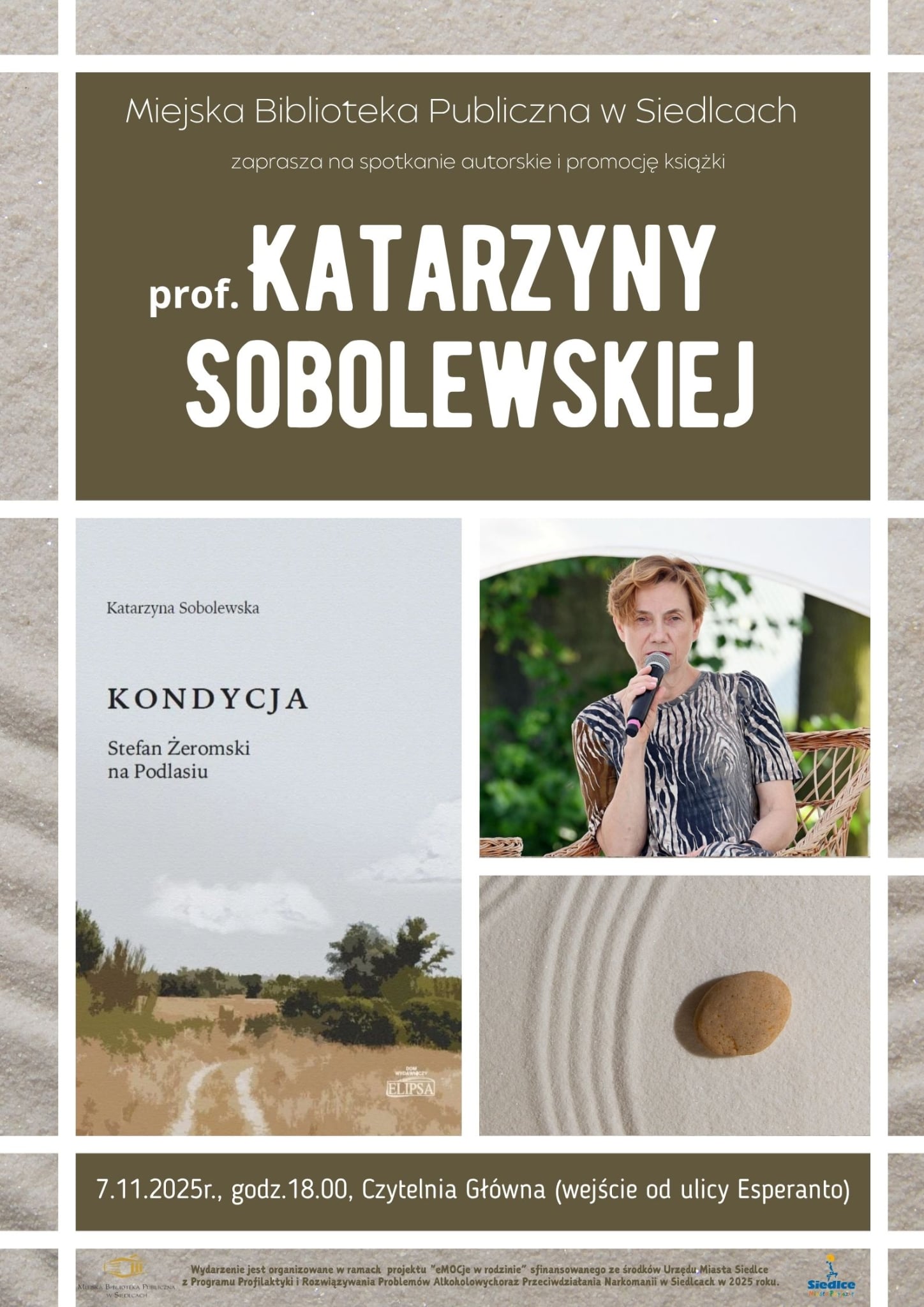 Z okazji Roku Stefana Żeromskiego Miejska Biblioteka Publiczna w Siedlcach zaprasza na spotkanie autorskie i promocję książki prof. Katarzyny Sobolewskiej pt. „Kondycja. Stefan Żeromski na Podlasiu”.