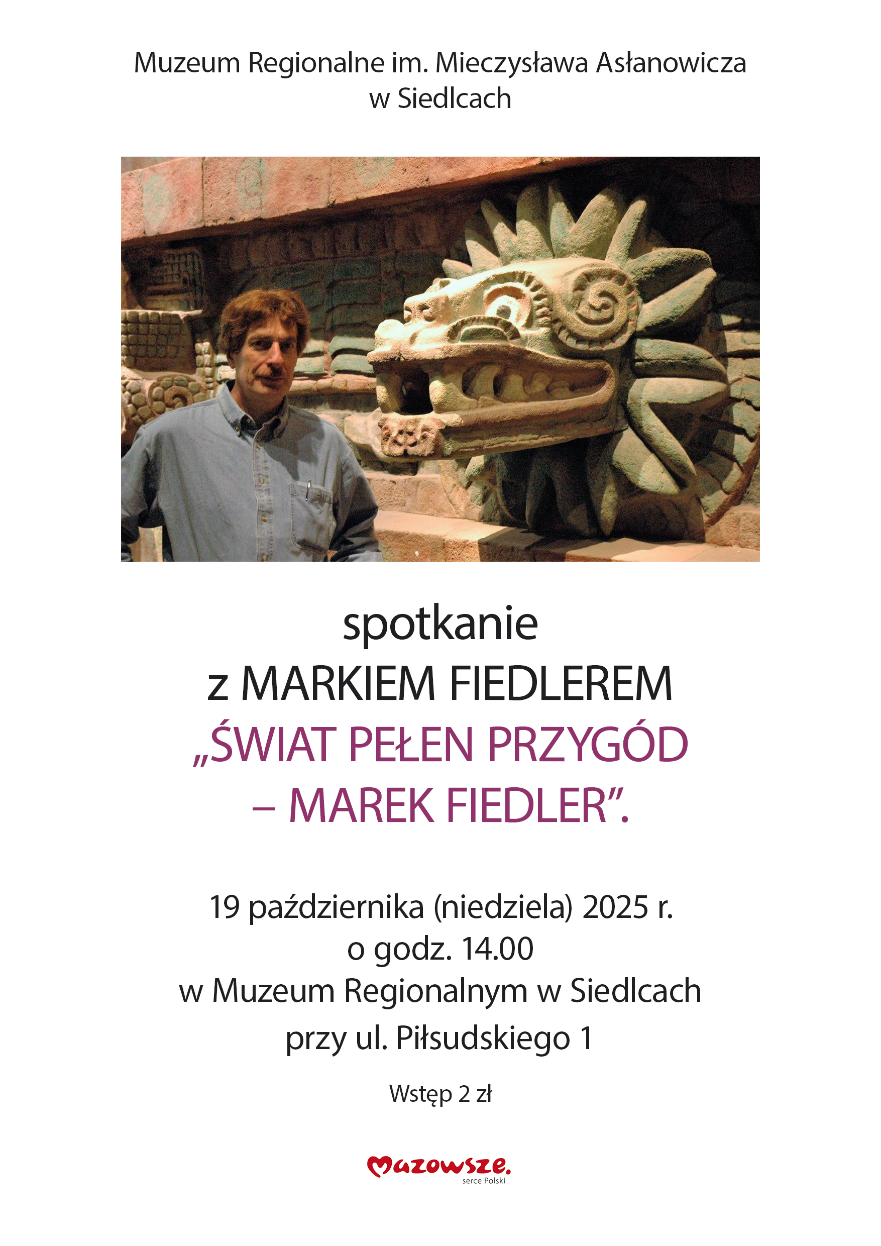 „Świat pełen przygód – Marek Fiedler” to tytuł spotkania autorskiego z pisarzem i podróżnikiem, synem legendarnego Arkadego Fiedlera, które odbędzie się w Muzeum Regionalnym im. Mieczysława Asłanowicza w Siedlcach. Spotkanie, które zaplanowano na niedzielę, 19 października na godz. 14:00, poprowadzi Krzysztof Chaberski.