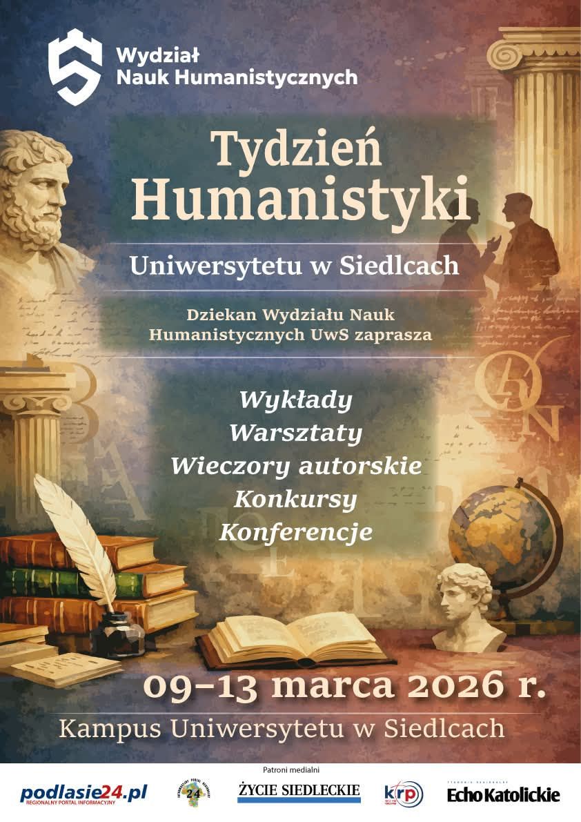 Tydzień Humanistyki na Wydziale Nauk Humanistycznych Uniwersytetu w Siedlcach odbędzie się od 9 do 13 marca. To cykl wykładów, warsztatów i paneli, które popularyzują wiedzę humanistyczną i promują dialog między nauką, kulturą i edukacją.