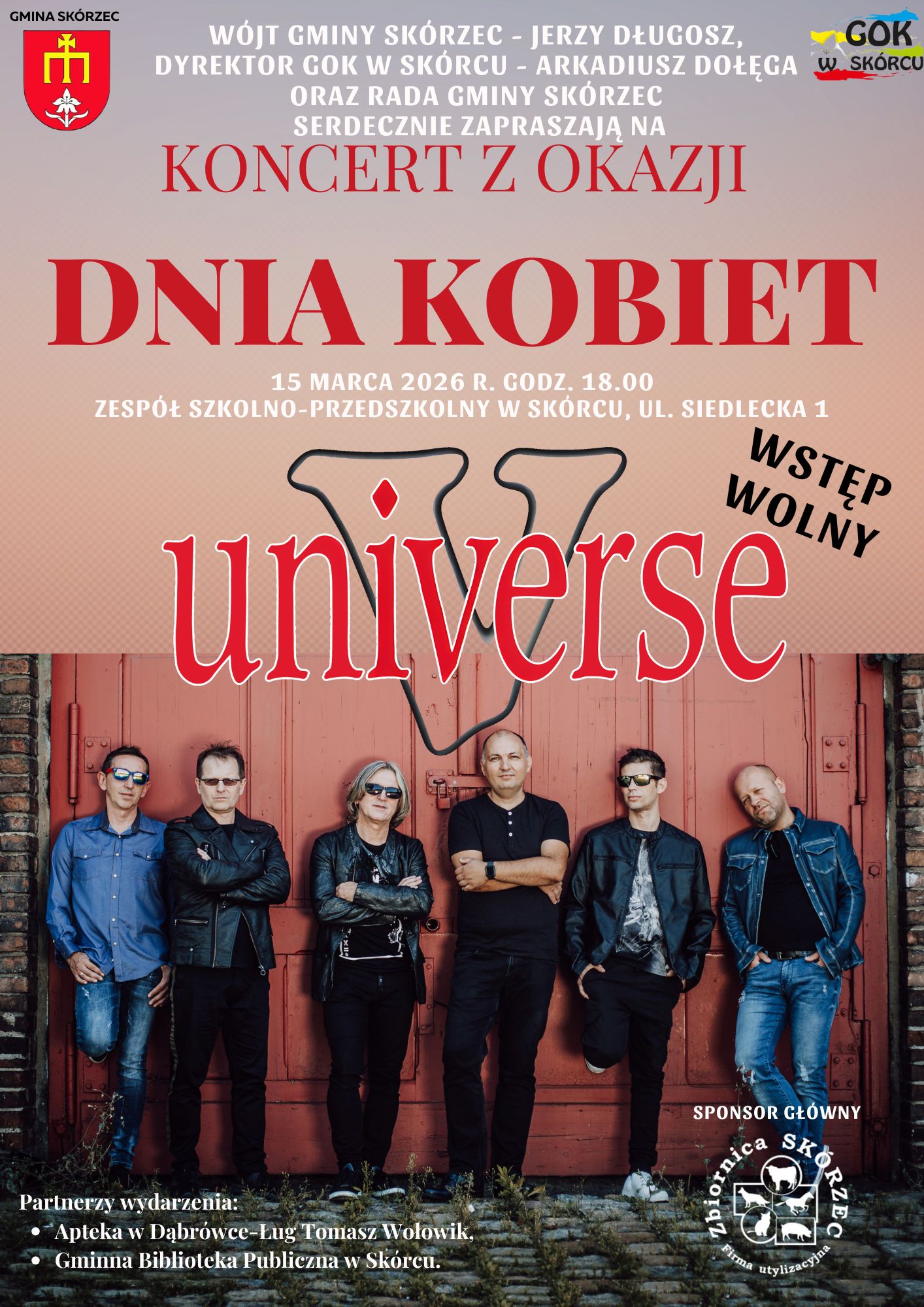 W Skórcu odbędzie się koncert z okazji Dnia Kobiet. Przed publicznością wystąpi zespół Universe.