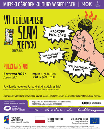 Miłośnicy poezji i żywego słowa znów będą mieli okazję zaprezentować swoje talenty. Już w środę, 5 czerwca, w Parku Miejskim „Aleksandria” w Siedlcach odbędzie się VII Siedlecki Slam Poetycki – wydarzenie, które łączy literacką pasję z nutą rywalizacji i dobrą zabawą.