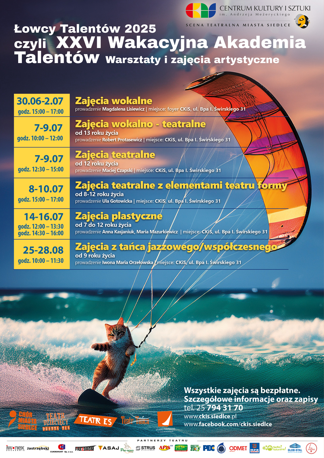 Centrum Kultury i Sztuki im. Andrzeja Meżeryckiego Scena Teatralna Miasta Siedlce przygotowało kolejną, 26. już edycję Wakacyjnej Akademii Talentów. W ramach letniego programu przewidziano szereg bezpłatnych warsztatów artystycznych skierowanych do dzieci i młodzieży. Oferta obejmuje zajęcia teatralne, wokalne, plastyczne i taneczne, prowadzone przez doświadczonych artystów i instruktorów związanych z siedleckimi instytucjami kultury.