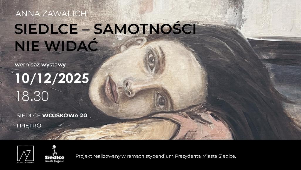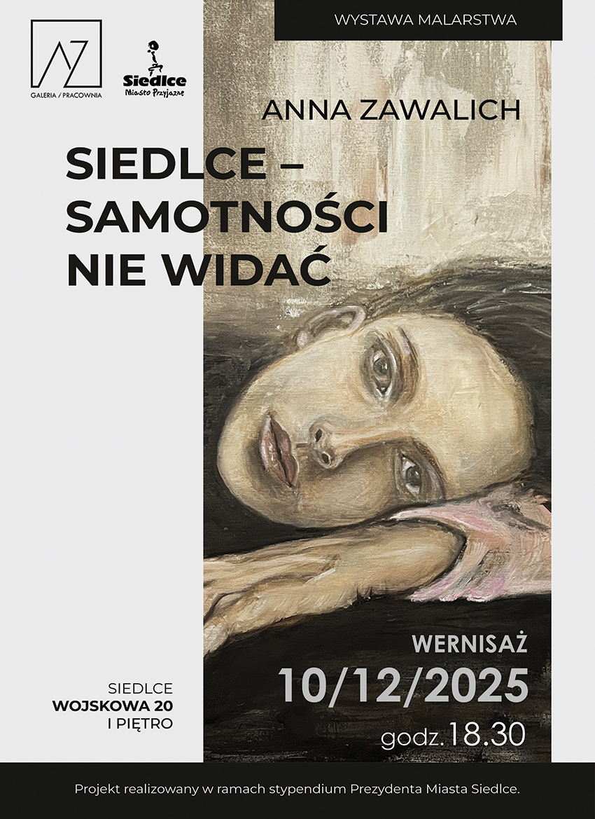 Wernisaż najnowszej wystawy Anny Zawalich pt. „Siedlce – Samotności nie widać” odbędzie się w środę, 10 grudnia, w Galerii i Pracowni AZ w Siedlcach. Projekt porusza jeden z najważniejszych, a jednocześnie najbardziej niedostrzeganych problemów współczesności – samotność. W prezentowanym cyklu artystka podejmuje próbę uchwycenia zjawiska, które dotyka ludzi niezależnie od wieku, statusu czy codziennych doświadczeń. Siedlce stają się tu nie tylko tłem, lecz także aktywnym uczestnikiem opowieści – miejscem, w którym człowiek ze swoimi dylematami, emocjami i poszukiwaniem kontaktu wciąż pozostaje niewidoczny.