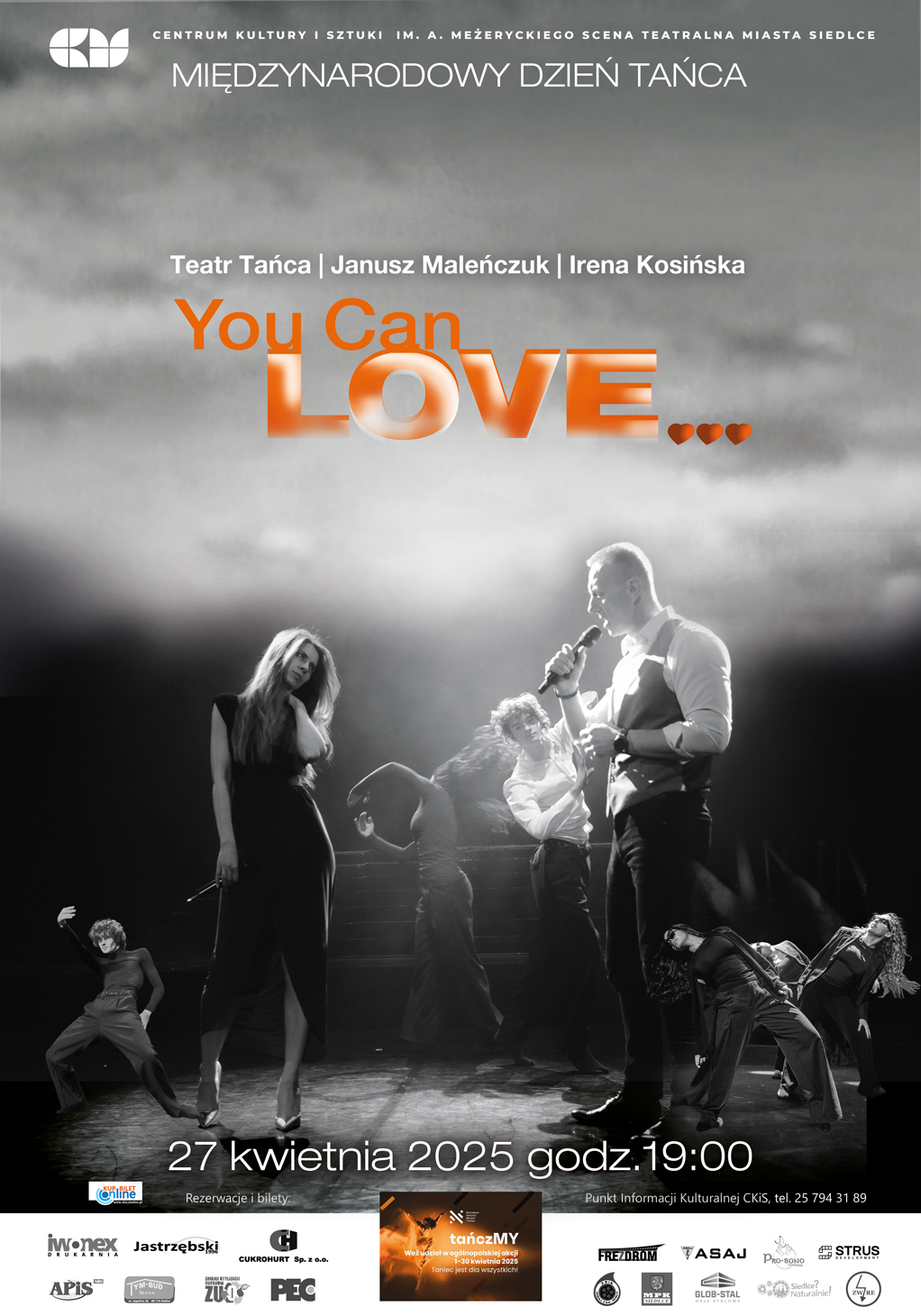 27 kwietnia o godz. 19:00 w Centrum Kultury i Sztuki w Siedlcach odbędzie się spektakl z okazji Międzynarodowego Dnia Tańca. YOU CAN LOVE… to spektakl tańca współczesnego oparty na tekstach o miłości największych twórców muzyki filmowej i popowej.