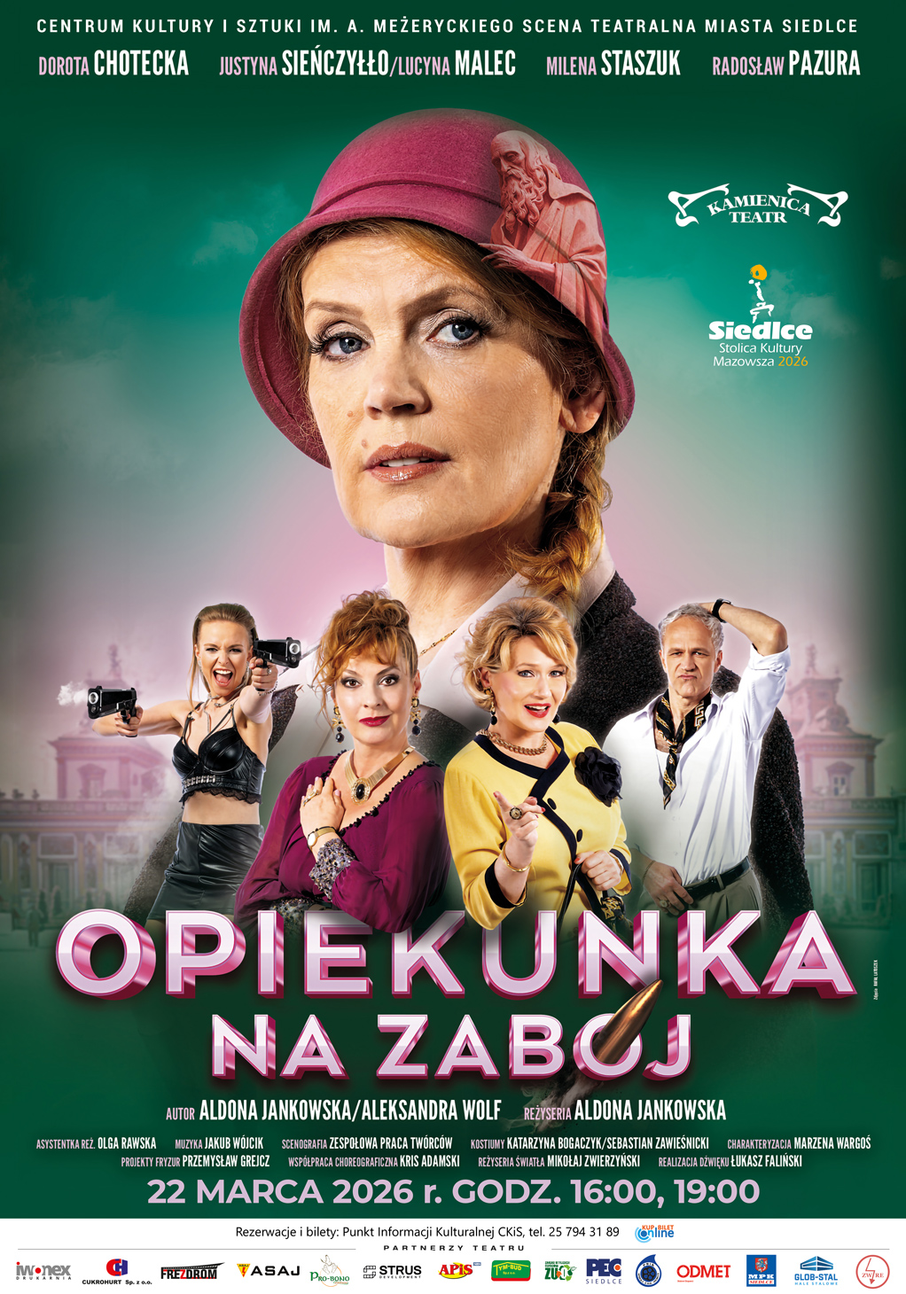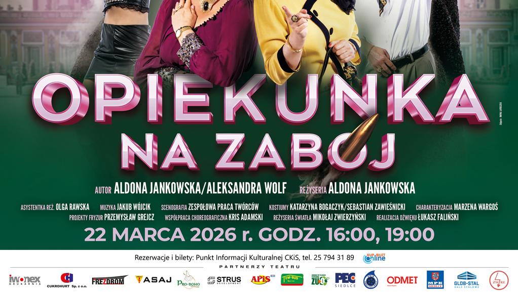 Bilety dostępne są w kasie Centrum Kultury i Sztuki w Siedlcach oraz online: https://biletyna.pl/spektakl/Opiekunka-na-zaboj/Siedlce
