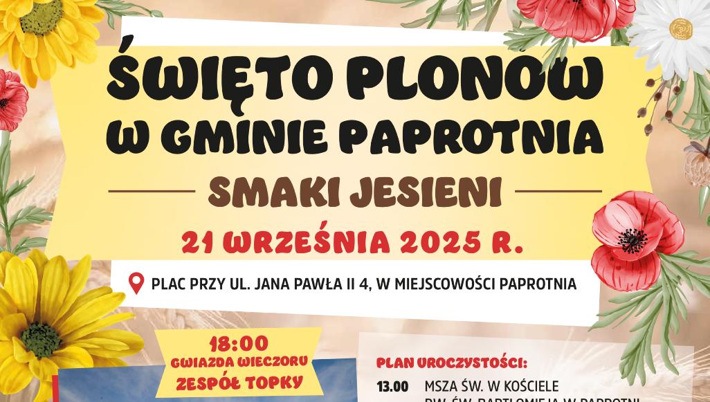 Region Patronat medialny Paprotnia Pon. 15.09.2025 14:01:35 Święto plonów w Gminie Paprotnia – Smaki Jesieni już 21 września