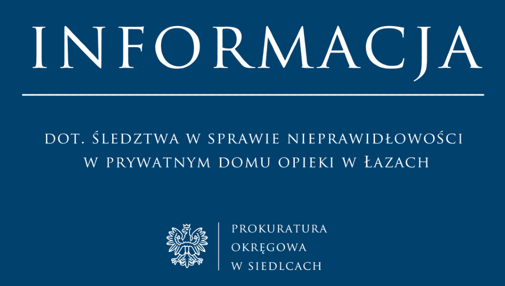 Prokuratura Okręgowa w Siedlcach prowadzi śledztwo w sprawie szokujących nieprawidłowości w prywatnym domu opieki w miejscowości Łazy w gminie Łochów. Sprawa wyszła na jaw po zawiadomieniu złożonym przez krewnego jednej z pensjonariuszek – 92-letniej kobiety, która doznała ciężkich obrażeń ciała.