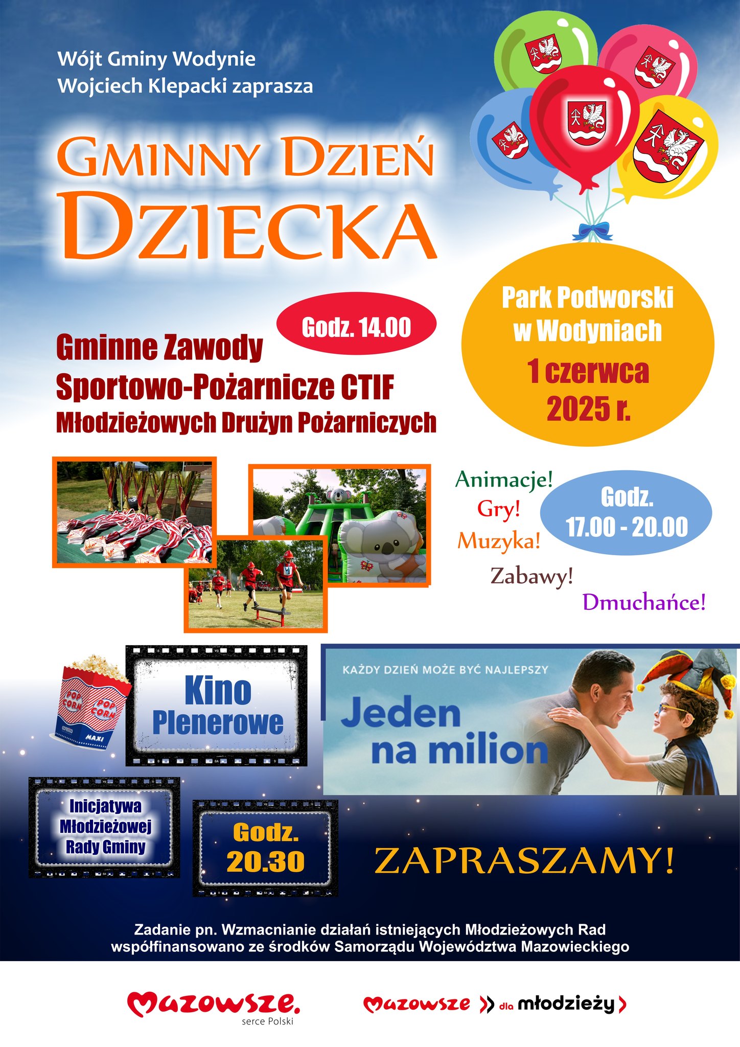 Rozpoczną się one o 14.00.Gminny Dzień Dziecka w Wodyniach odbędzie się z inicjatywy Młodzieżowej Rady Gminy i potrwa do 20.00.