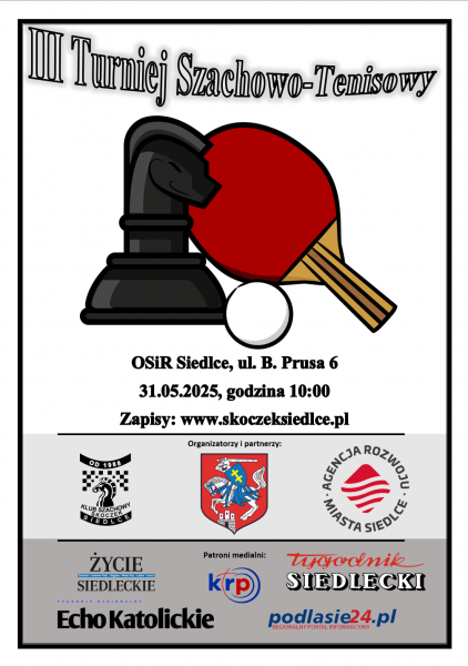 Celem turnieju jest popularyzacja szachów i tenisa stołowego wśród dzieci i dorosłych. Organizatorem wydarzenia jest Klub Szachowy „Skoczek” Siedlce, a partnerem – Agencja Rozwoju Miasta Siedlce.Harmonogram i zasady rozgrywek: