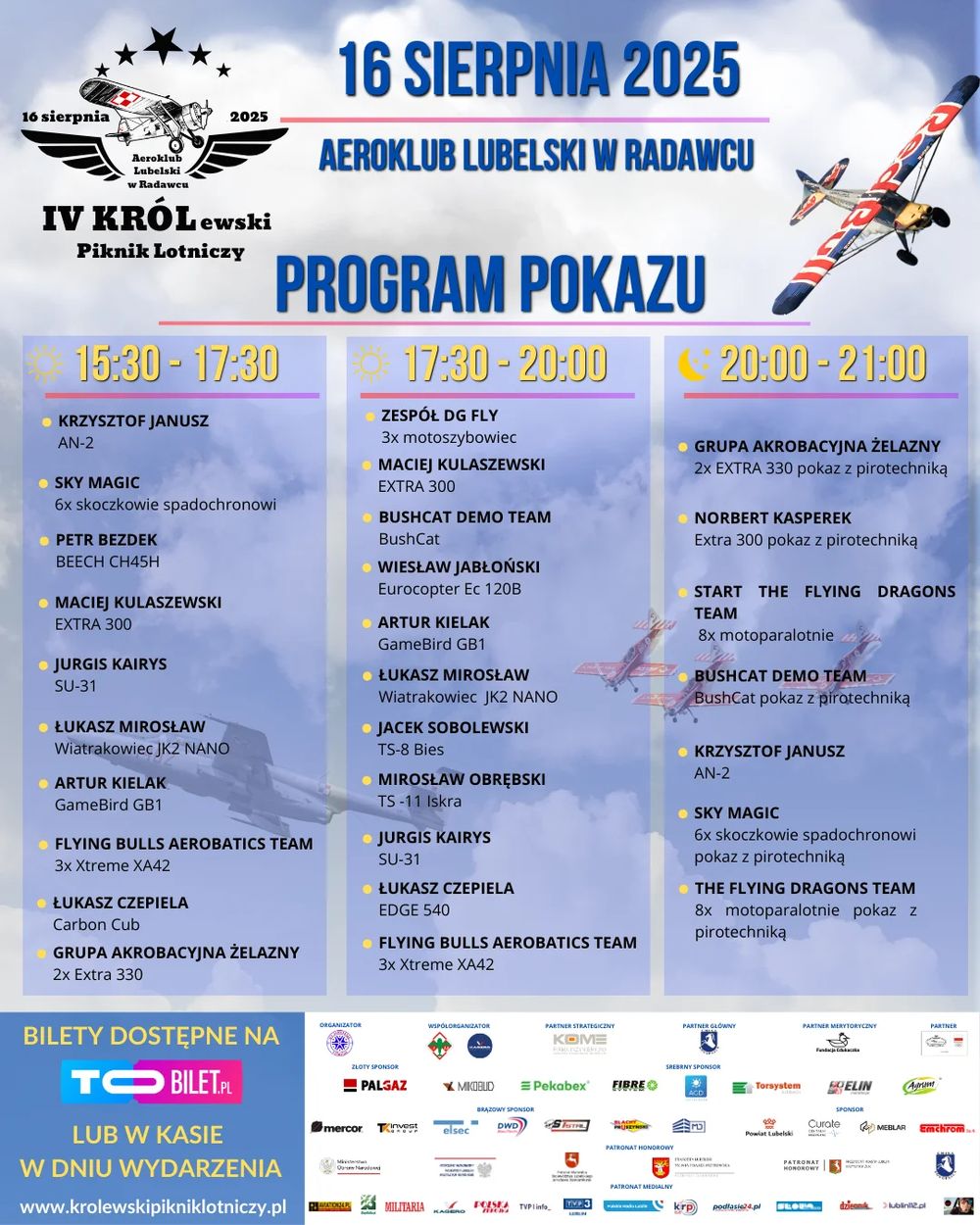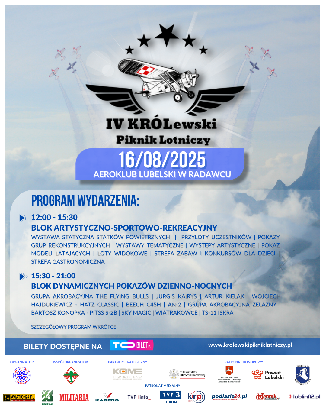 🎟️ Bilety dostępne są online: 👉 https://tobilet.pl/iv-krolewski-piknik-lotniczy.html
