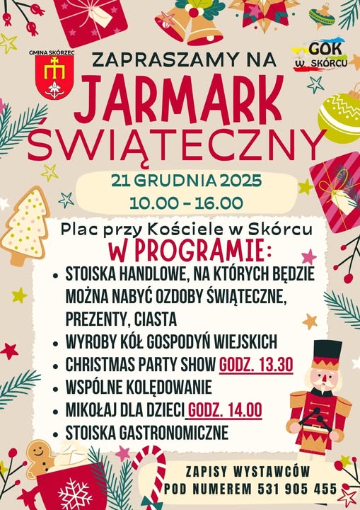 Organizatorem wydarzenia jest Gminny Ośrodek Kultury w Skórcu. Jarmark świąteczny odbędzie się pod patronatem Wójta Gminy Skórzec Jerzego Długosza. Katolickie Radio Podlasie oraz portal Podlasie24.pl również zapraszają wszystkich na jarmark i z całego serca dziękują za wsparcie naszej radiowej i portalowej koleżanki.
