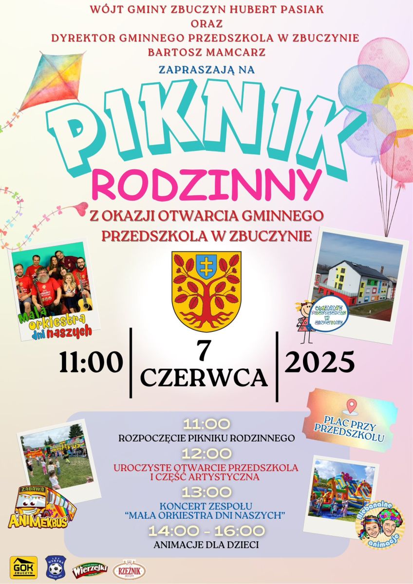 Piknik koło szkoły w Zbuczynie rozpocznie się o godzinie 11:00. W południe zostanie zaprezentowane nowe gminne przedszkole. Faktycznie działa ono już od marca, ale teraz będzie pokazane publicznie. Na 13:00 zaplanowany jest koncert „Małej Orkiestry Dni Naszych”, a potem do godziny 16:00 będzie trwać cykl animowanych zabaw.Imprezie będzie towarzyszyć zbiórka na leczenie i rehabilitację Roberta Wysokińskiego, mieszkańca Łęcznowoli.