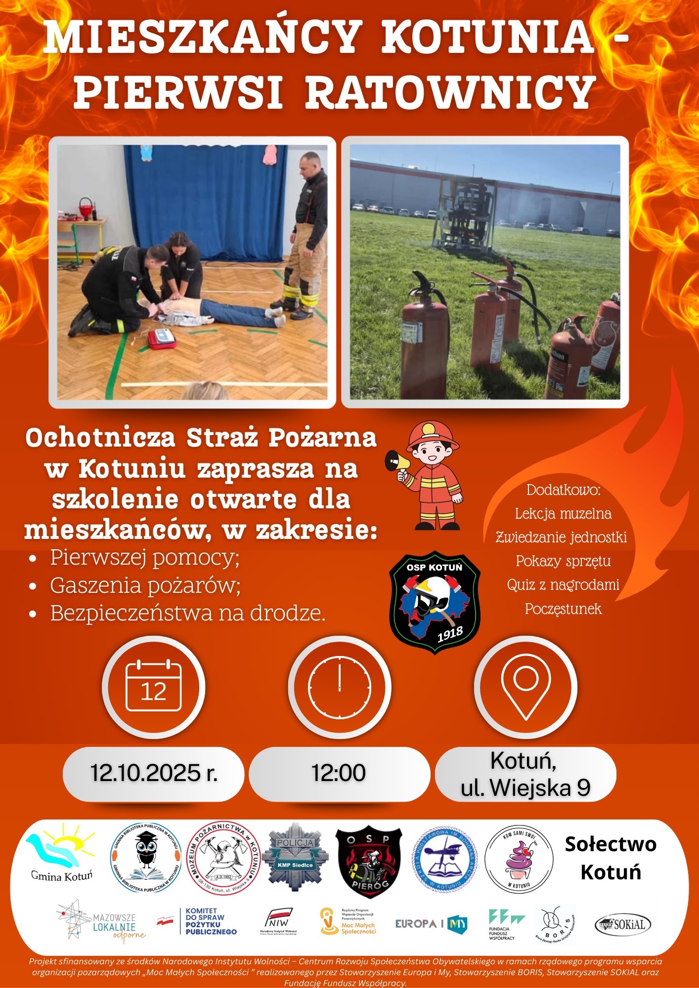 Ochotnicza Straż Pożarna w Kotuniu organizuje spotkanie poświęcone pierwszej pomocy i różnym aspektom bezpieczeństwa. Odbędzie się ono w niedzielę 12 października.