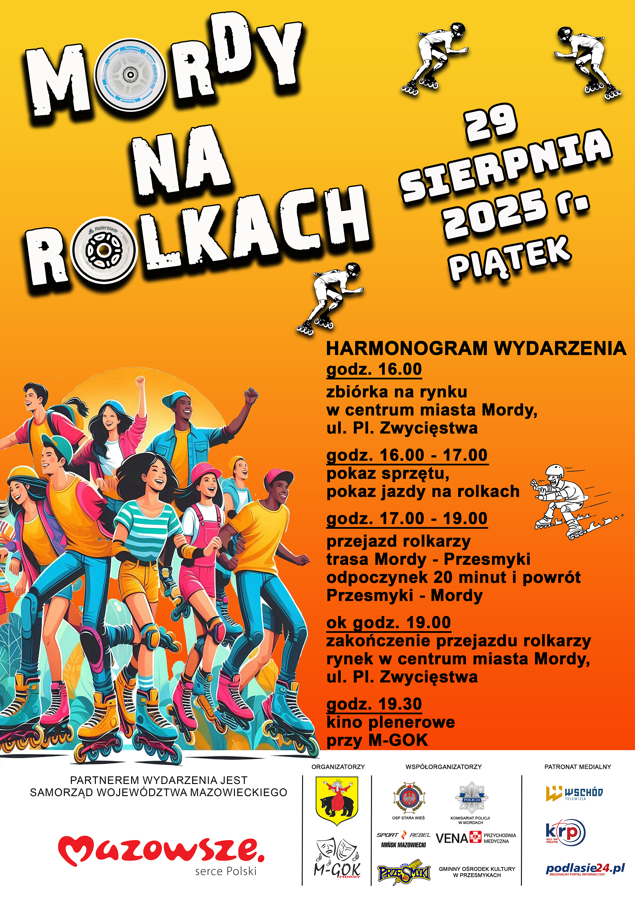 Zbliżający się event, zatytułowany „Mordy na Rolkach”, to doskonała okazja do aktywnego spędzenia czasu na świeżym powietrzu oraz do integracji wśród lokalnej społeczności.Zbiórka uczestników zaplanowana została na godzinę 16:00, a przez pierwszą godzinę, do 17:00, odbędzie się pokaz sprzętu i technik jazdy na rolkach. To czas, aby zapoznać się z różnymi rodzajami rolek i przygotować się do głównej atrakcji dnia – przejazdu rolkarzy. O godzinie 17:00 ruszy przejazd, który poprowadzi uczestników trasą Mordy-Przesmyki. W trakcie przejazdu przewidziano 20-minutowy odpoczynek w Przesmykach, po którym rolkarze wrócą z powrotem do Mordów. Planowane zakończenie przejazdu to godzina 19:00 na rynku w Mordach.