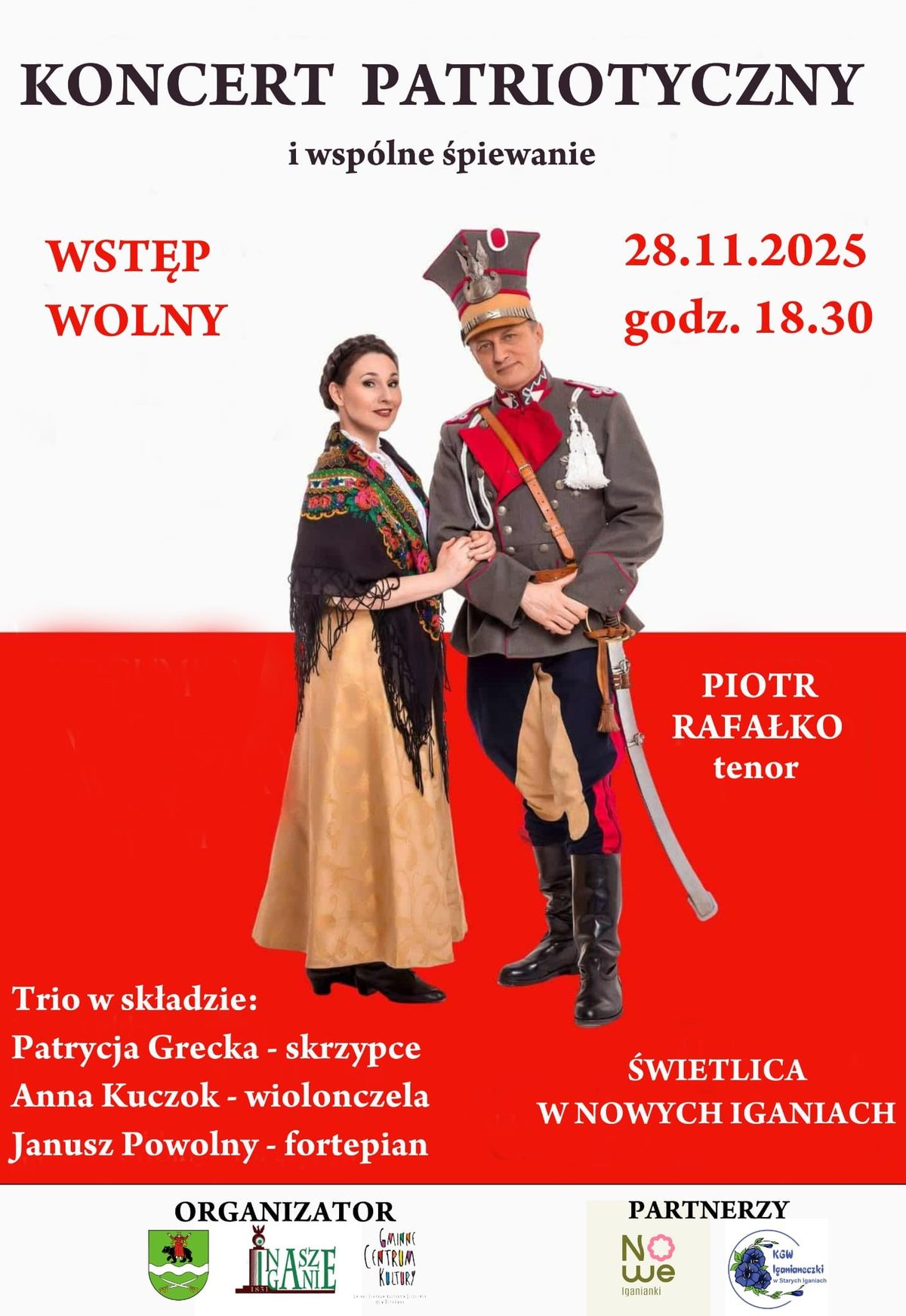 Następnie, o godzinie 18.30, w świetlicy w Nowych Iganiach odbędzie się Koncert Patriotyczny. Wystąpi Piotr Rafałko, ceniony tenor znany z mistrzowskich interpretacji polskich pieśni historycznych. W programie znajdą się utwory nawiązujące do bohaterstwa powstańców, ich tęsknoty za wolnością oraz niezłomnej postawy w obliczu dramatycznych wydarzeń 1830 roku.