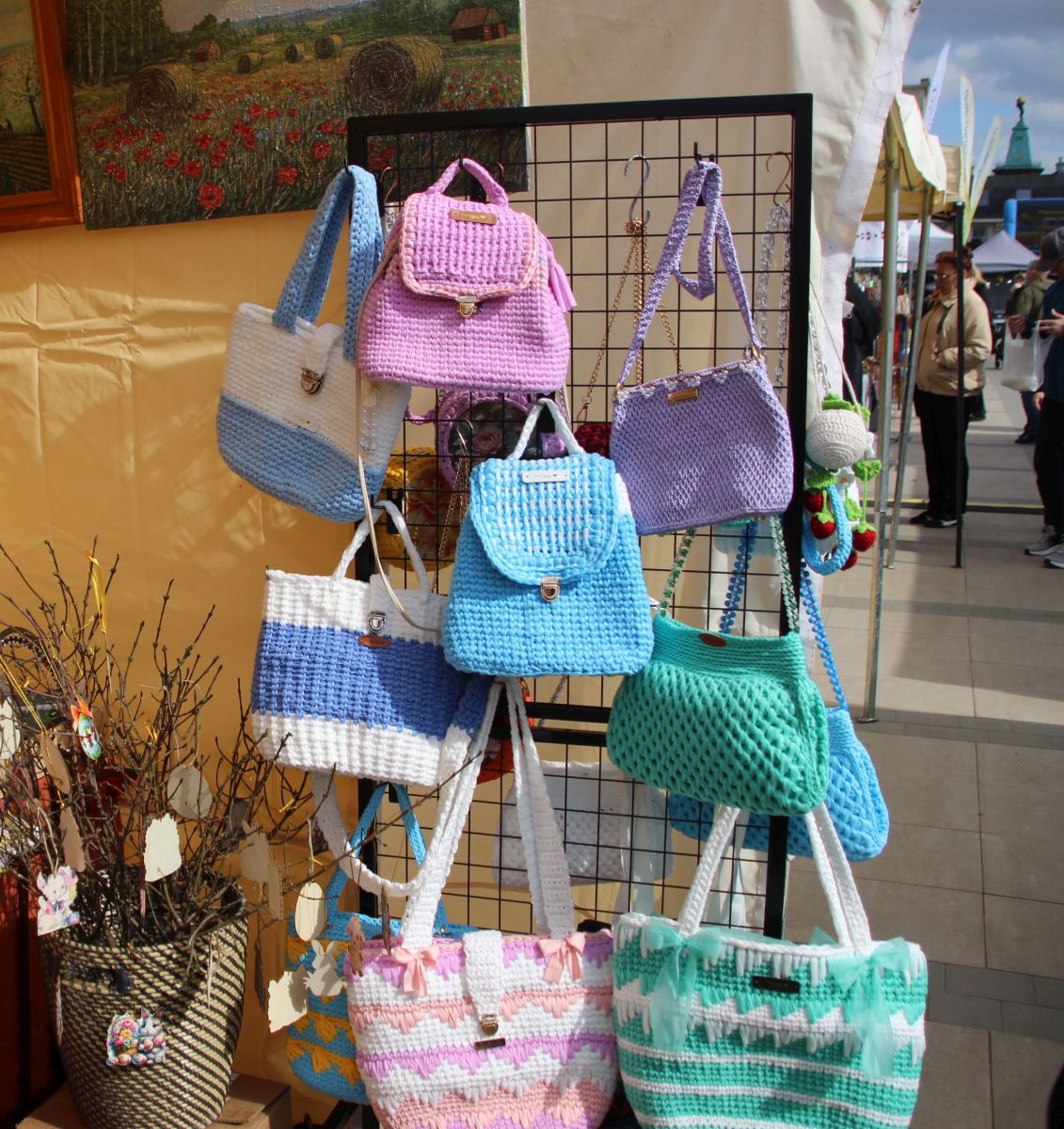 Koszyczki wielkanocne można pleść z wikliny, ale można też… wydziergać na szydełku. – Czegoś takiego nie zrobi żadna fabryka. Wkładamy tam swoją duszę. Tak samo z palemkami: naturalne, własnoręcznie zerwane i ususzone rośliny, poukładane i skomponowane z duszą – mówi Ołena Romaniuk, która przyjechała na siedlecki jarmark z powiatu sokołowskiego. Irena Żyżniewska, Polka z Białorusi, mieszkająca obecnie w powiecie wyszkowskim, przywiozła z kolei stroiki, przy których można uruchomić wyobraźnię: – Zrobione z miłością i pasją. Nadają się na stół, na komodę i na prezent. Można patrzeć i sobie myśleć: co te zajączki robią, kto mieszka w tym domku, jak kurczaczki weszły na ten daszek. Moja córka mówi, że każdy stroik jaki robię, jest bajką.