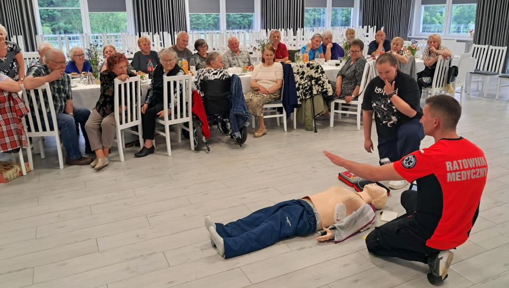 Członkinie KGW przygotowały dla gości uroczystą kolację, która stała się okazją do rozmów, wspomnień i integracji mieszkańców. Spotkanie odbyło się 8 czerwca i przebiegało w ciepłej, serdecznej atmosferze, a uśmiechom i wzruszeniom nie było końca.Uzupełnieniem wieczoru były zajęcia z zakresu udzielania pierwszej pomocy, które poprowadził ratownik medyczny Michał Kadej ze SPZOZ "RM-Meditrans" SPRiS w Siedlcach. Uczestnicy mieli okazję poznać podstawowe zasady reagowania w sytuacjach zagrożenia życia, co stanowiło cenną i praktyczną lekcję.