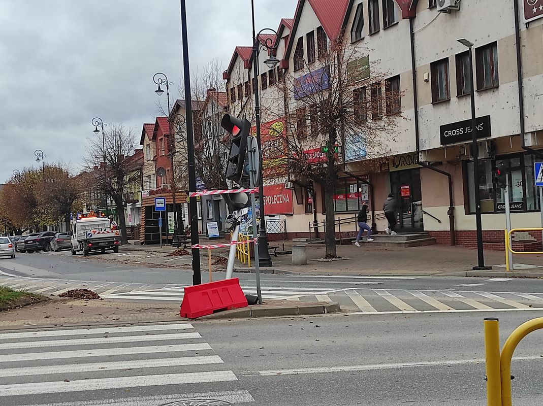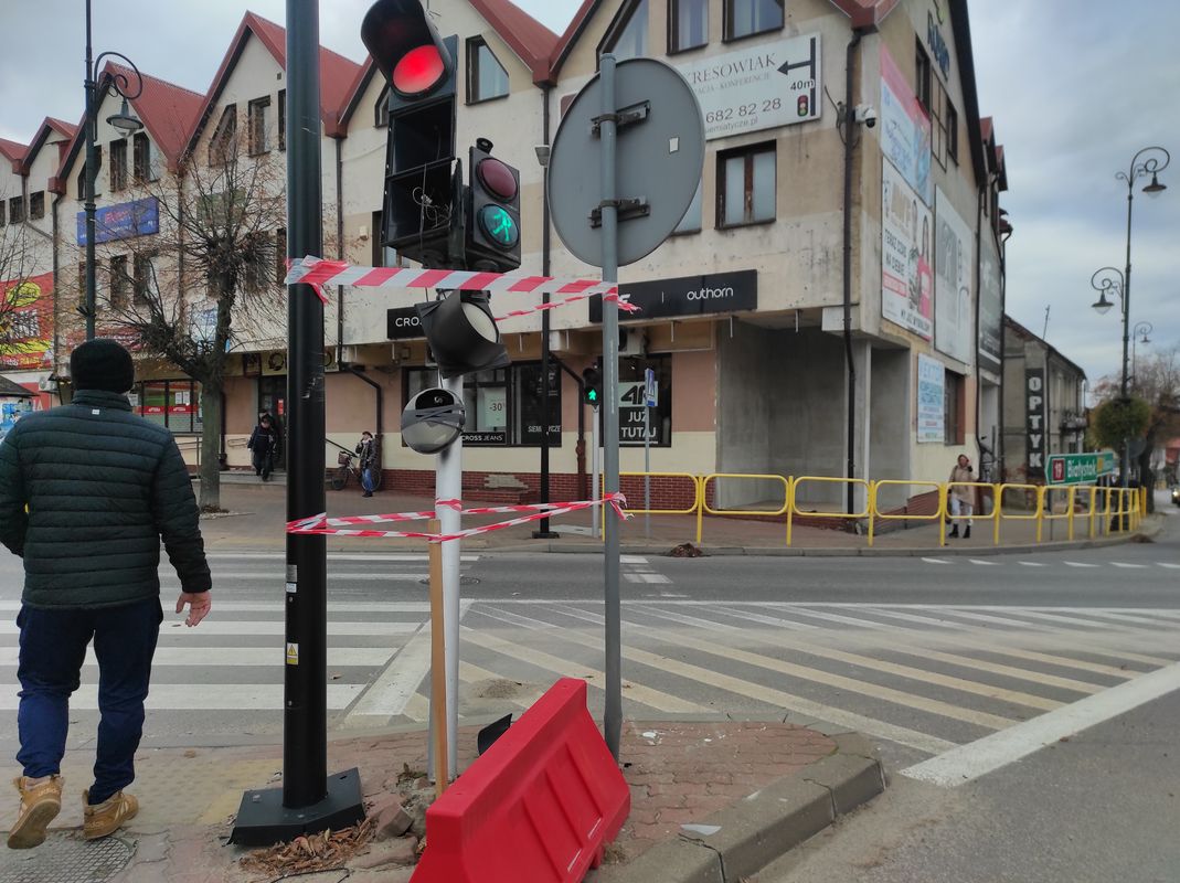 Jeden ze słupków sygnalizacyjnych został wówczas połamany. Tymczasowo podparto go i zabezpieczono w sposób prowizoryczny – związano i sklejono. Niestety, prowizorka trwa do dziś. W międzyczasie doszło do kolejnych usterek – m.in. przestało działać zielone światło dla kierunku z Placu Jana Pawła II w stronę ulicy Grodzieńskiej. Kierowcy, by prawidłowo ocenić sygnały, muszą spoglądać na sąsiedni sygnalizator, co jest nie tylko niewygodne, ale też potencjalnie niebezpieczne.