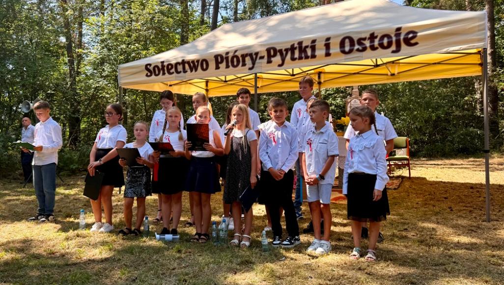 Uroczyste obchody Święta Wojska Polskiego i 105. rocznicy zwycięskiej Bitwy Warszawskiej rozpoczęły się w lesie w „Choinie Ostojskiej” (między Piórami Pytkami a Ostojami) o godz. 11.30 Mszą św. polową sprawowaną przez ks. Michała Wawerskiego – proboszcza parafii św. Jana Chrzciciela w Radzikowie Wielkim. Została ona odprawiona przy pomniku Wojciecha Karczmarczyka – poległego żołnierza Bitwy Warszawskiej 1920 r. pochodzącego z Małopolski, który padł od kuli bolszewickiej 18 sierpnia pamiętnego roku 1920. To ku czci wszystkich polskich żołnierzy poległych w Bitwie Warszawskiej, których tu symbolem jest Wojciech Karczmarczyk, w 10 rocznicę odzyskania przez Polskę niepodległości mieszkańcy Ostoj wznieśli pomnik, który co roku gromadzi lokalną społeczność, dla których pamięć o tych wydarzeniach jest wciąż żywa, która przekazuje ją z pokolenia na pokolenie. Przy tym pomniku co roku odbywają się też uroczystości patriotyczne.Zaraz po Mszy św. odbyła się akademia patriotyczna w wykonaniu uczniów Szkoły Podstawowej im. ks. kan. Kazimierza Dymitrowicza w Radzikowie Wielkim, przygotowana przez Agatę Ciborowska-Wasiluk i Natalię Dymecką. Na zakończenie akademii młodzież po raz pierwszy zaprezentowała pieśń „Wśród Choiny cieni”, do której tekst i muzykę stworzyła pani Dymecka.
