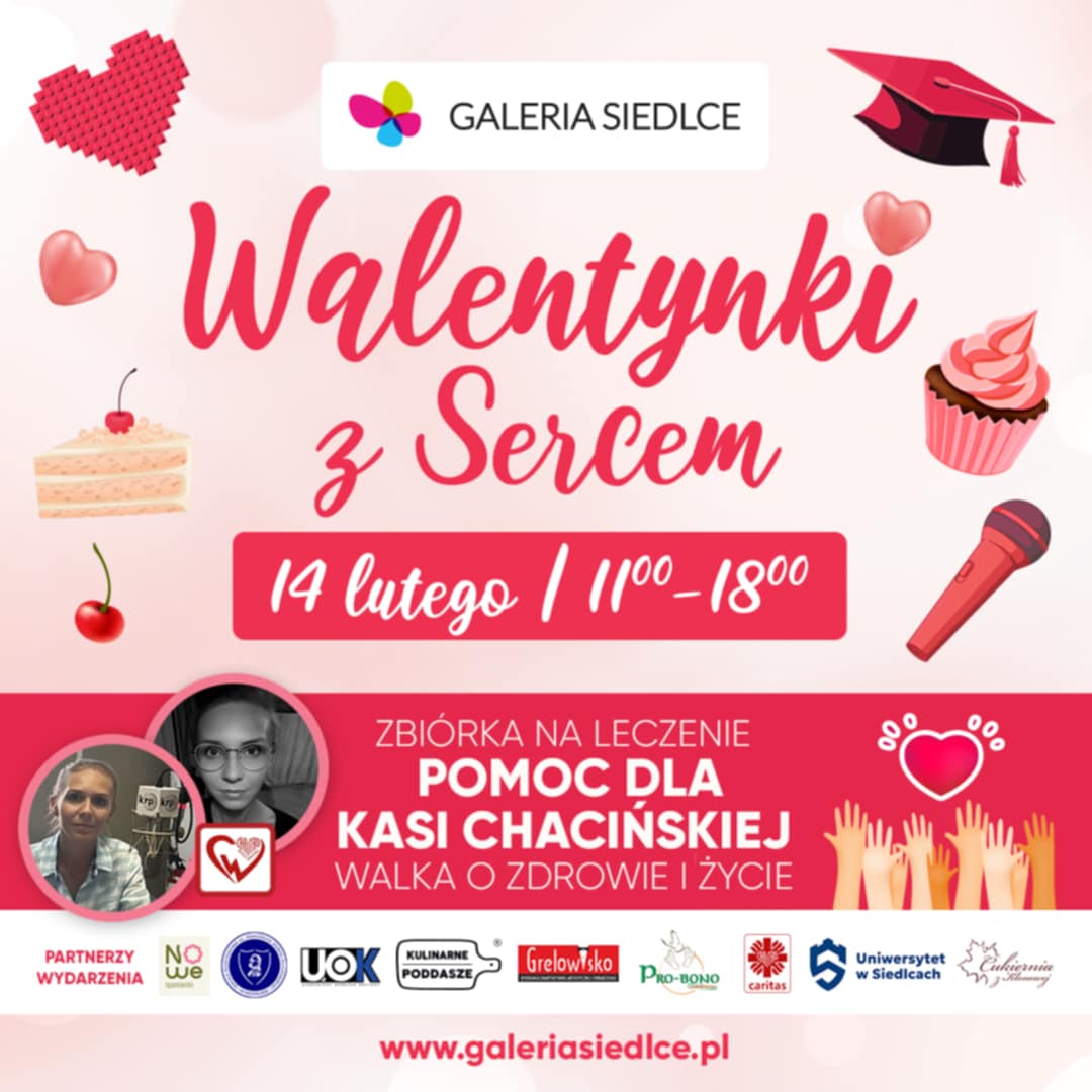 Zbliża się święto zakochanych, czyli Walentynki. Z tej okazji w Galerii Siedlce odbędzie się impreza pod jasłem „Walentynki z Serce”. Będzie to też okazja, aby wesprzeć naszą redakcyjną koleżankę, Kasię Chacińską.